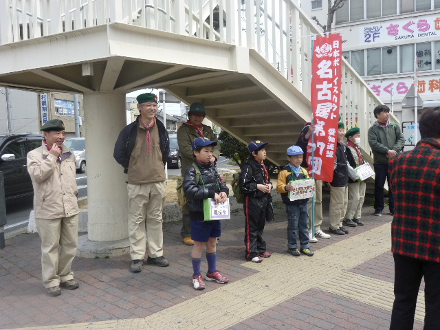 4月3日中村公園前交差点付近で災害募金を3隊合同で実施しました。(ビーバー、カブ隊コーナーにも画像あります)